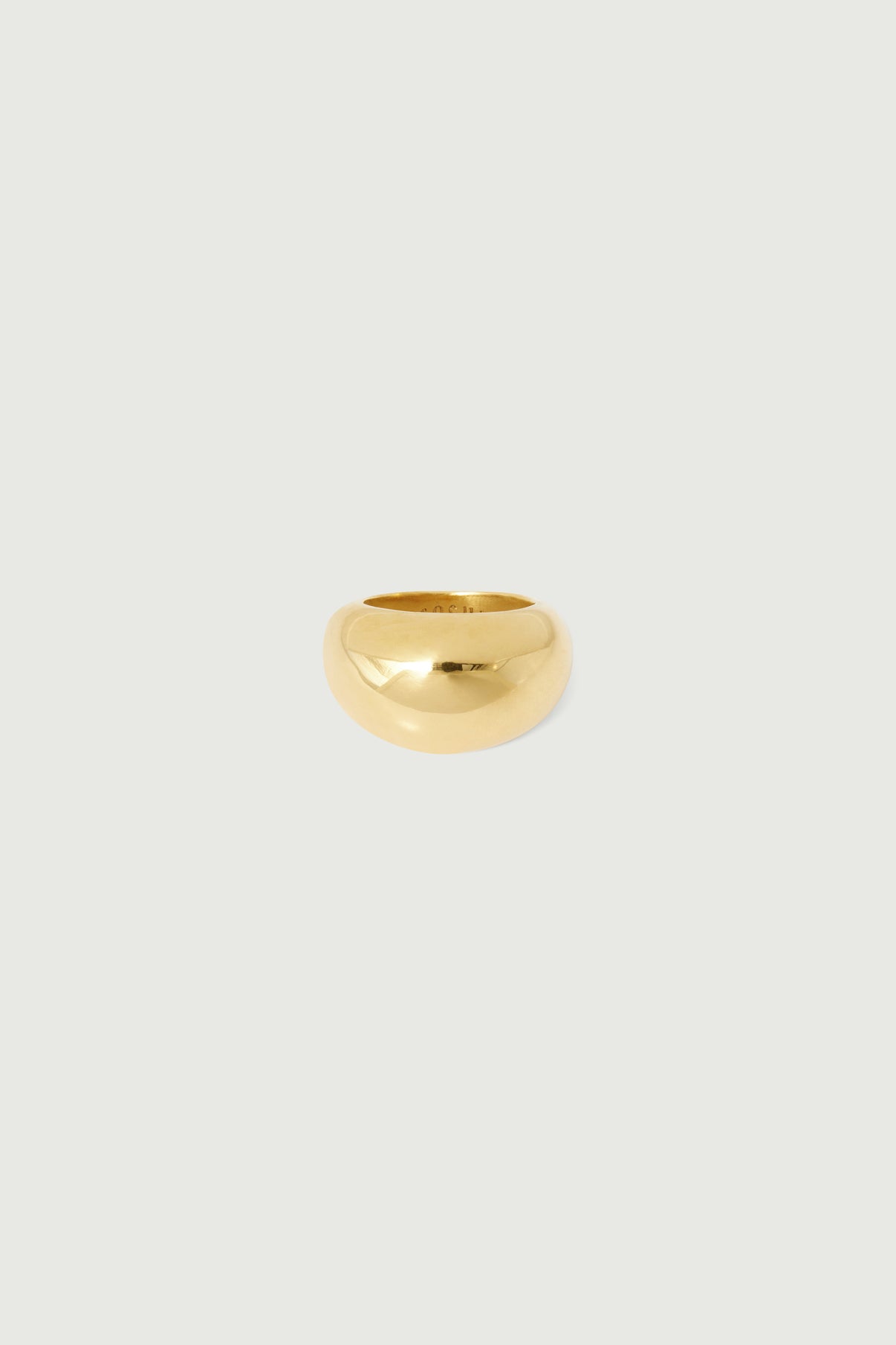ZELIE is a domed brass ring. It can be worn on its own or as an overlay. It is also available in silver, to create the illusion of a two-tone ring.