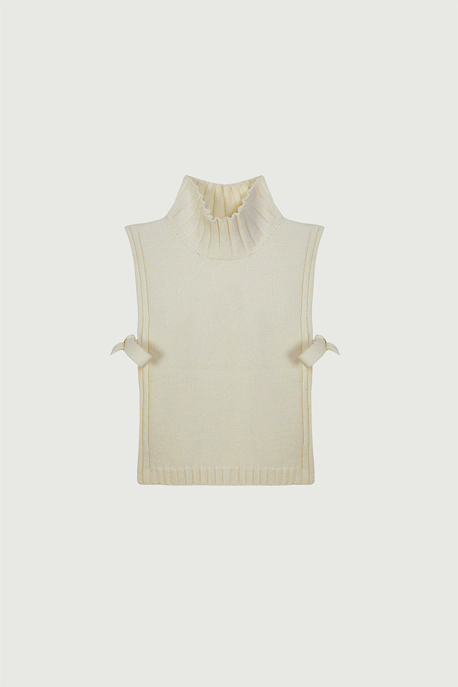 OR is a long woollen bib that can be adjusted with two side ties that can be tied or left hanging. The knit is compact, providing a certain amount of hold and a straight stand-up collar. It will warm up any outfit with style. It's practical, too, so it doesn't restrict the movement of your arms.