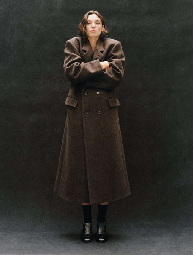 Più lunghezza, il contrasto della pelle rivelata dalla materia prima: un modo per introdurre il cappotto maschile nel guardaroba femminile.