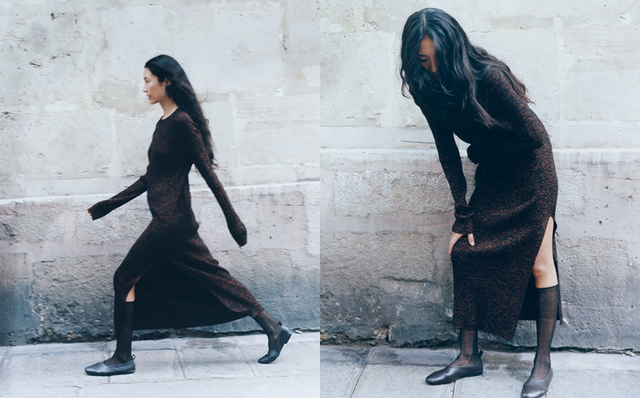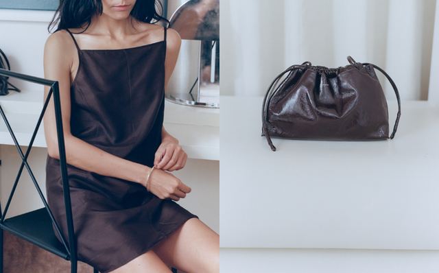 la delicatezza di un abito color prugna in seta doupion: con questa nuova capsule, Soeur rivisita a modo suo il guardaroba da sera.