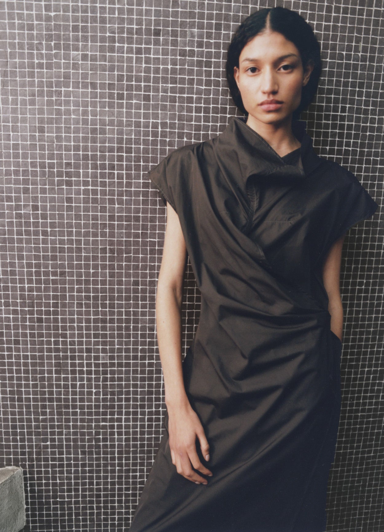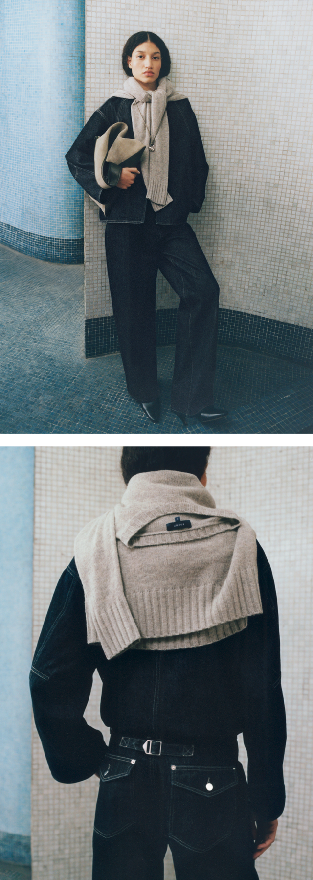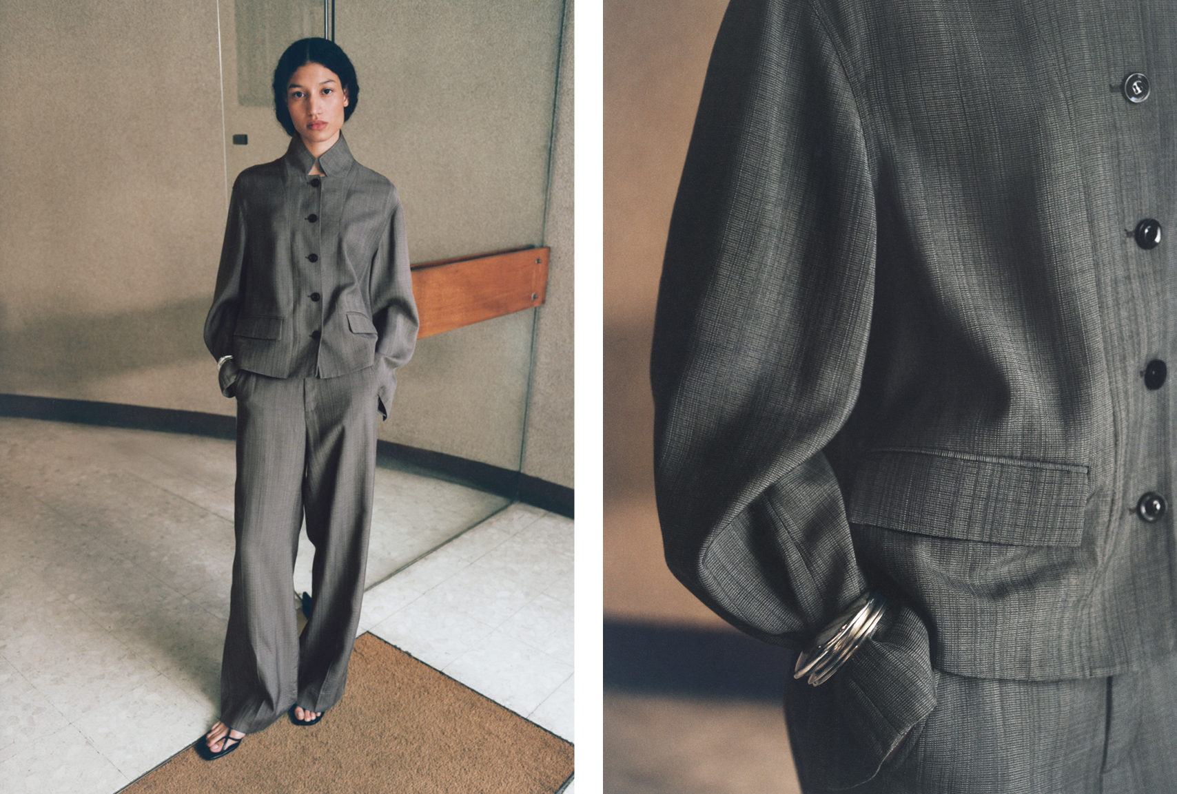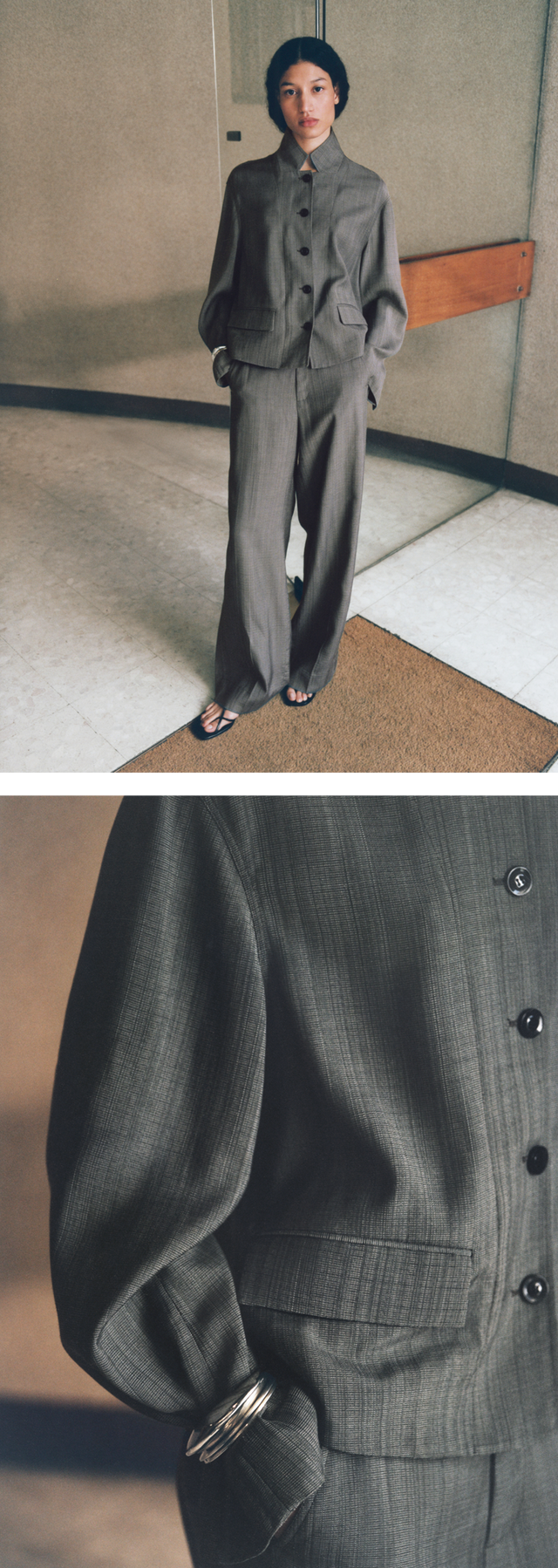 Una palette di sfumature di bianco, beige e gesso disegna un guardaroba urbano e femminile. I materiali si sovrappongono e si mescolano con sensibile eleganza: lana double face melange, pelle morbida, popeline o denim testurizzato.