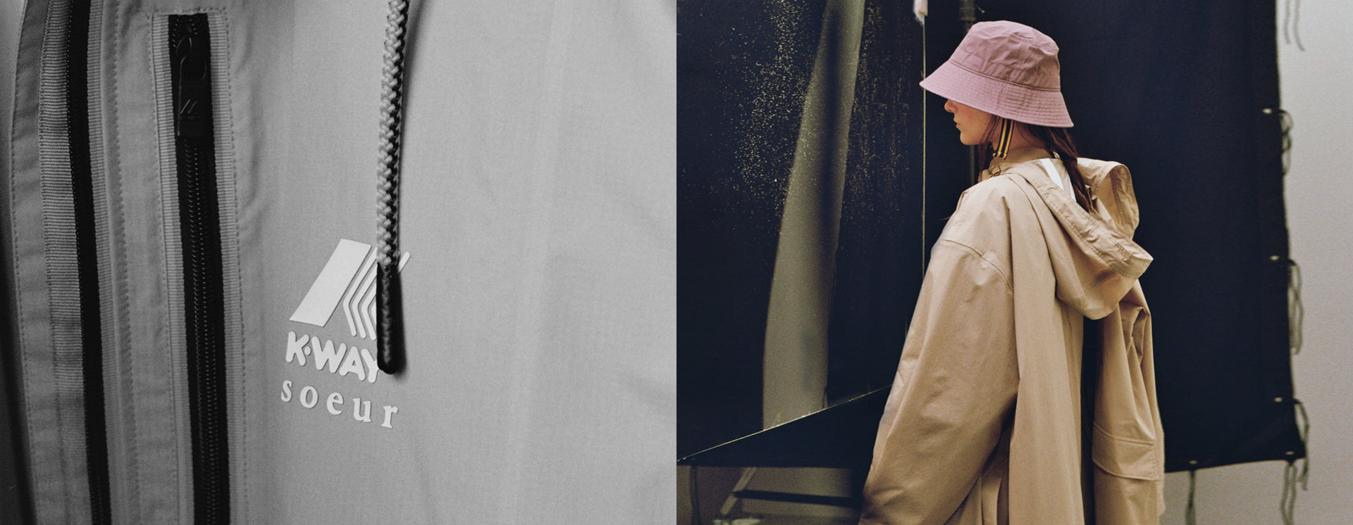 Per quanto riguarda i processi di produzione, siamo costantemente alla ricerca di tecniche che riducano il nostro impatto, sia in termini di utilizzo delle risorse che di emissioni nell'ambiente. Le collaborazioni sono spesso un'occasione per sperimentare nuovi materiali: con Léandra Medine Cohen abbiamo scelto tra gli stock di tessuti utilizzati nelle precedenti collezioni, mentre con K-way® abbiamo testato un materiale riciclato al 100% sviluppato dal loro team.