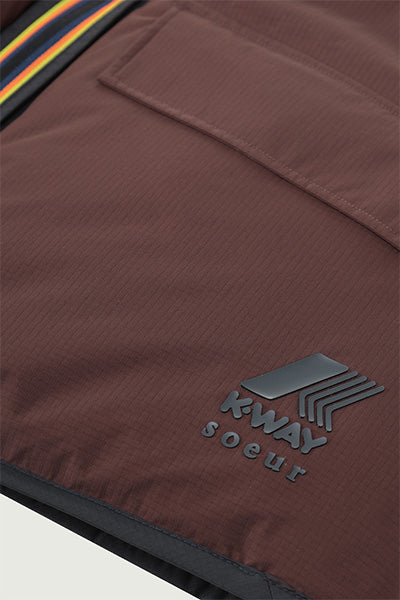 Al centro di questa terza collaborazione, il nylon 100% riciclato 2.1 Amiable, certificato GRS (Global Recycled Standard), sviluppato nei laboratori K-Way®, prolunga la tecnicità con consapevolezza. La sua durata è rafforzata dalla struttura Ripstop, la cui produzione richiede il 40% di energia in meno rispetto a un tessuto standard. Un materiale leggero e performante, pensato per l'uso quotidiano e per accompagnare il corpo senza mai ostacolarlo.