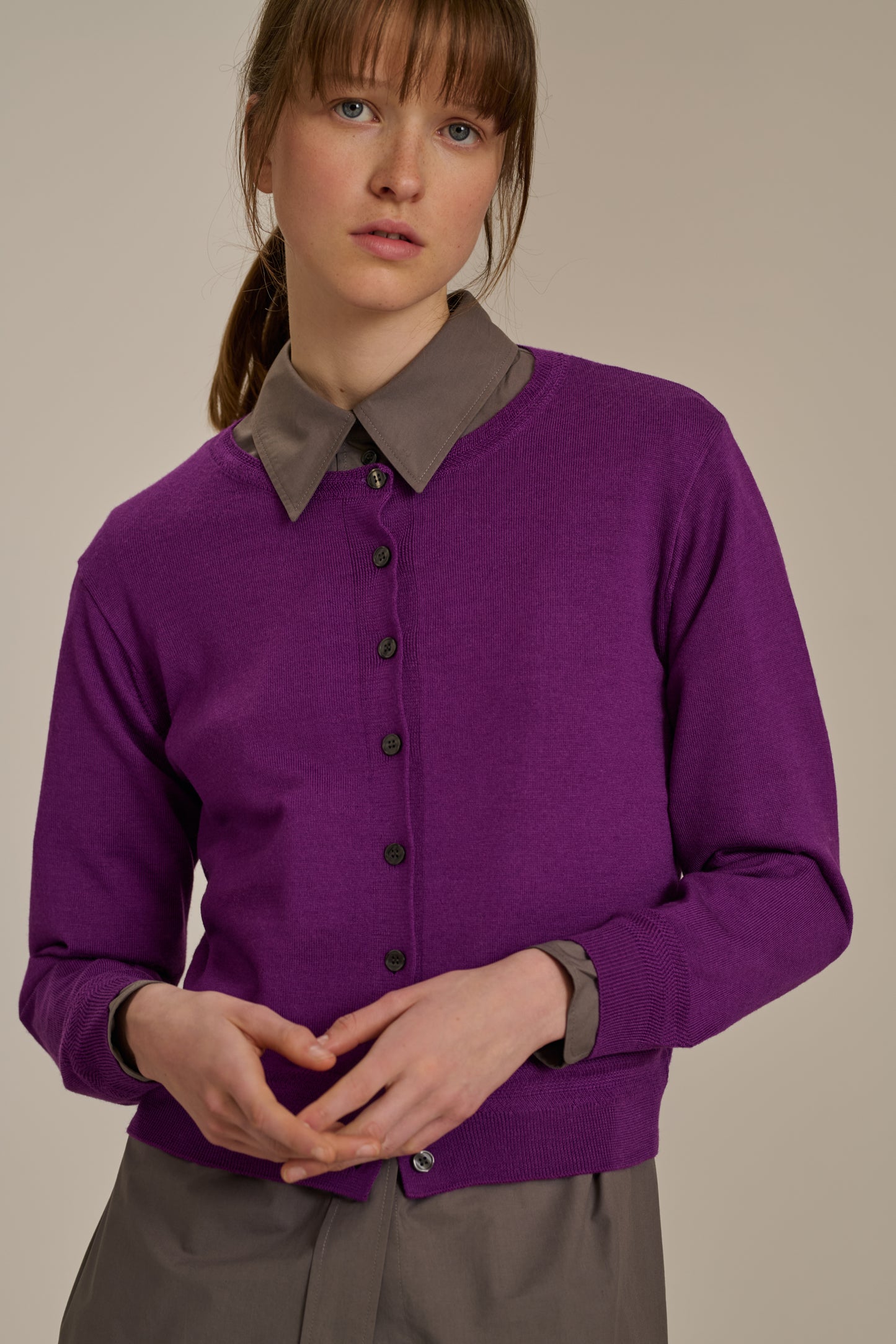 TITA è un cardigan corto e squadrato. È lavorato a maglia in lana merino fine e morbida da indossare a contatto con la pelle o a strati. Le maniche e il fondo del corpo sono lavorati con un punto fantasia che aggiunge un tocco di originalità. Si abbinerà perfettamente sia a un jeans a vita alta che a una gonna essenziale.
