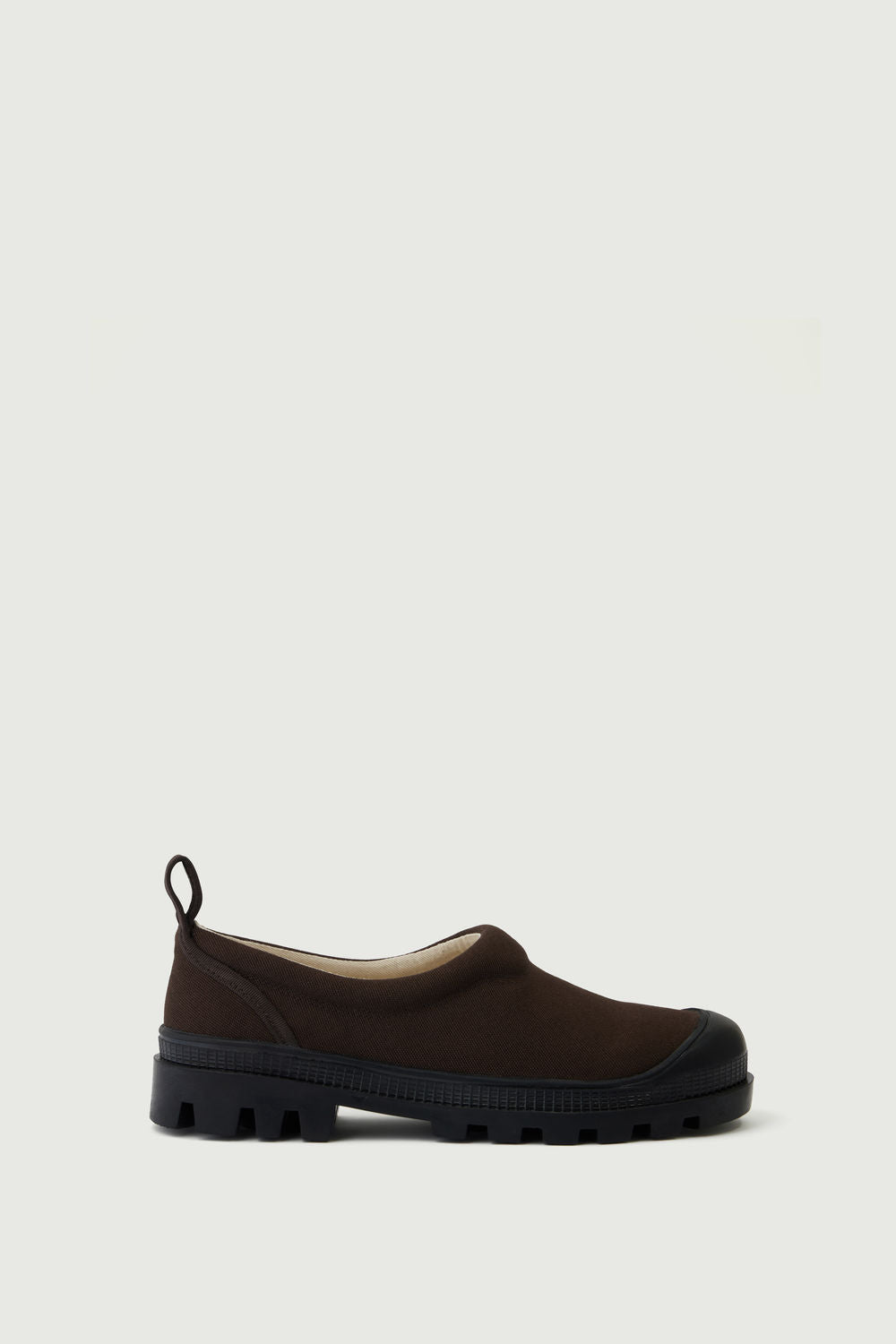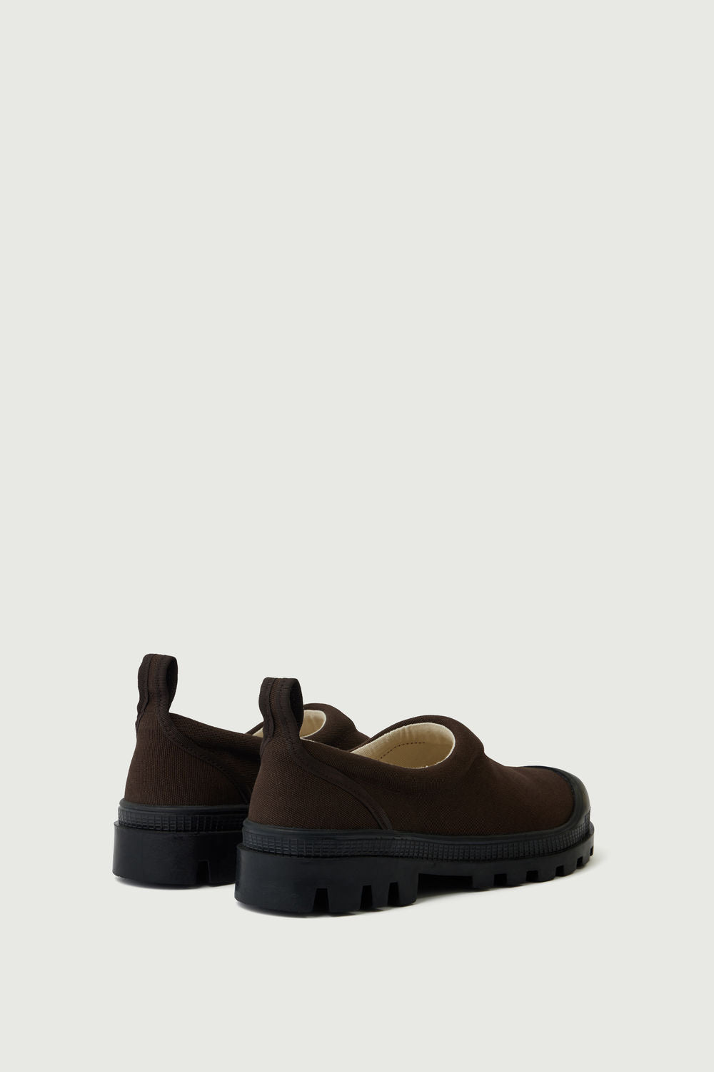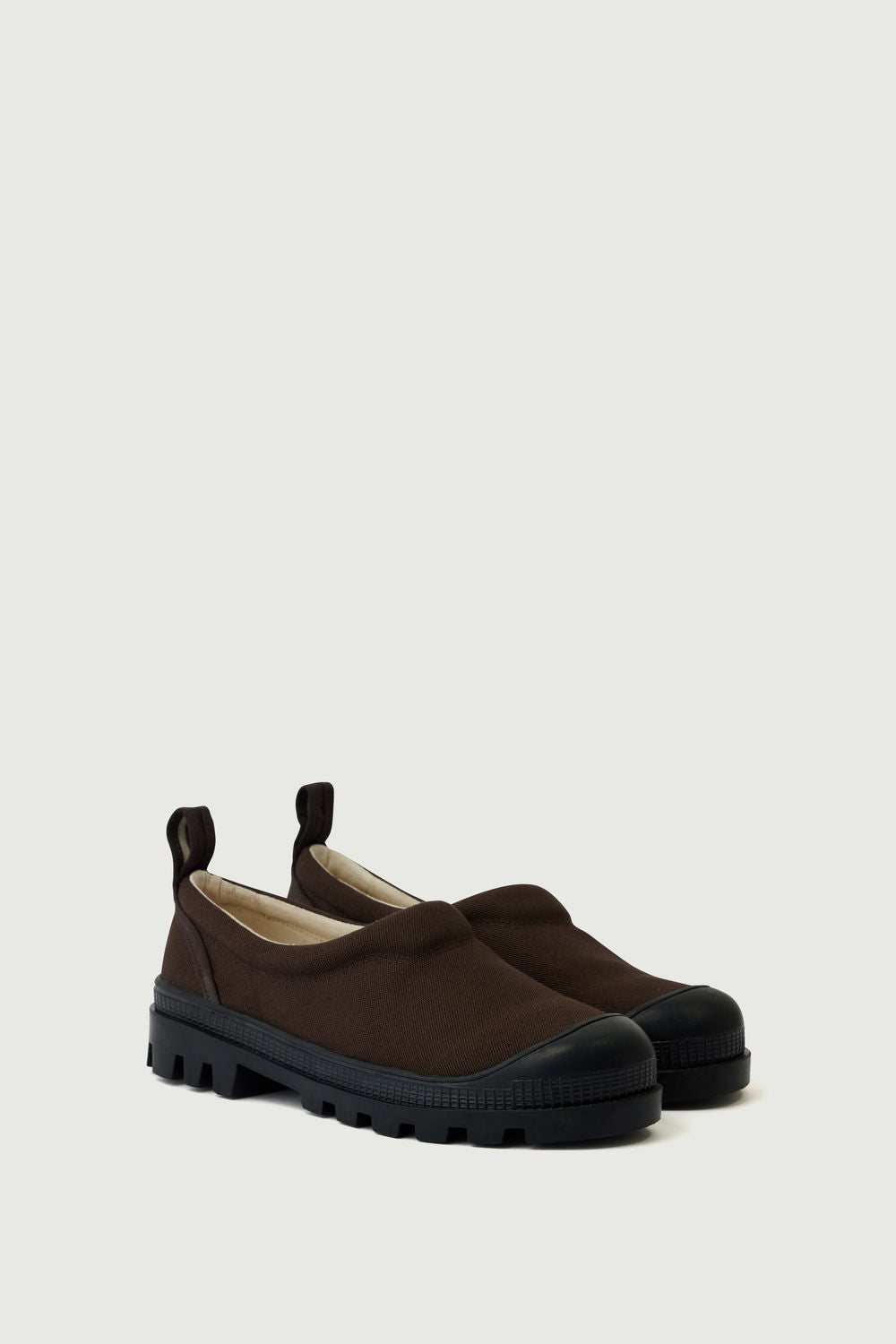 - Stivaletti in canvas marrone con suole dentate in gomma nera