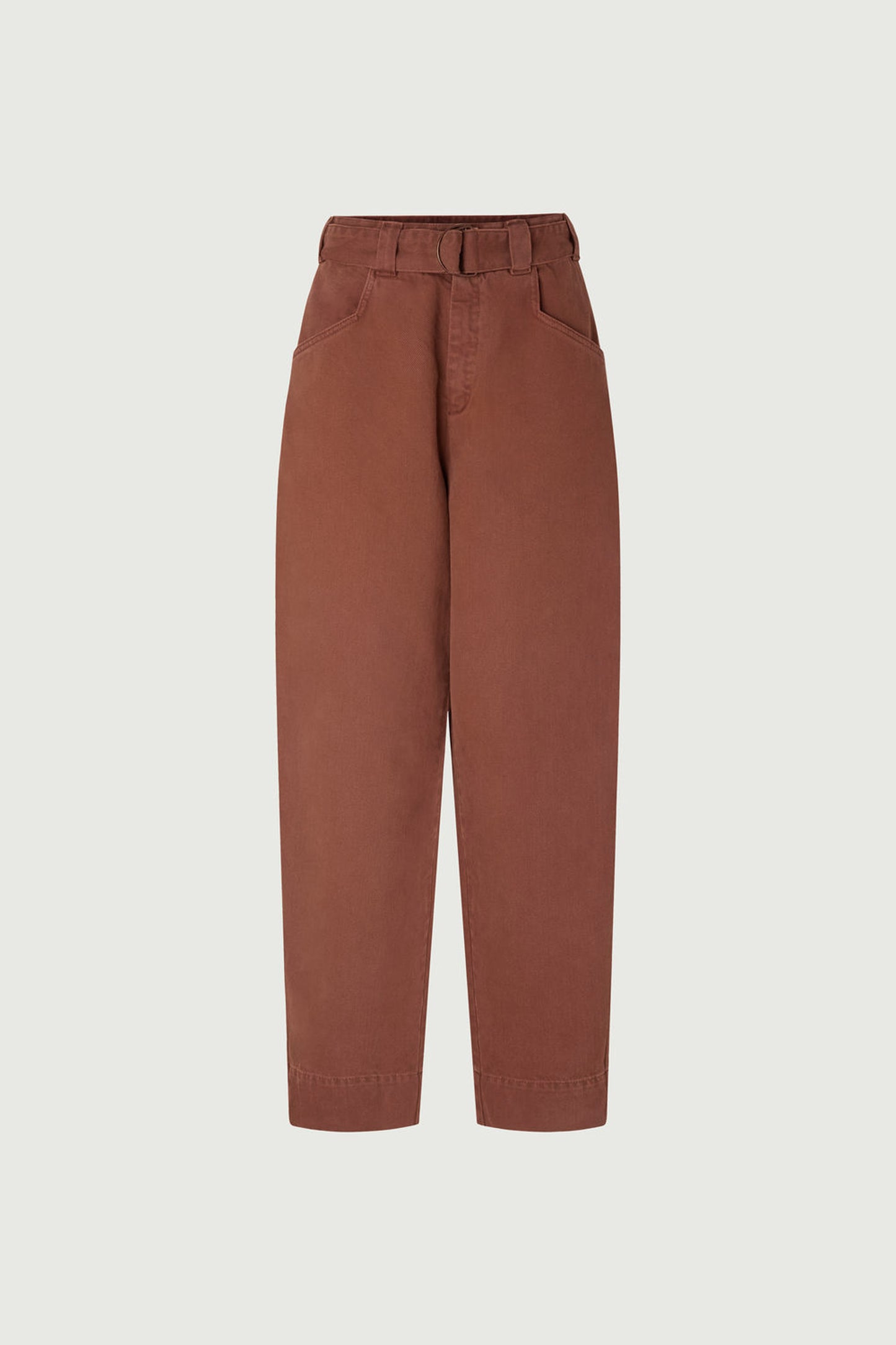VOLAGE è un jeans a vita alta che si adatta grazie a una larga cintura scorrevole. Il tessuto in cotone spesso accentua il suo volume arrotondato. È riconoscibile per le sue tasche con taglio diagonale. Le gambe sono volutamente lunghe per variare le lunghezze e poterlo indossare risvoltato.