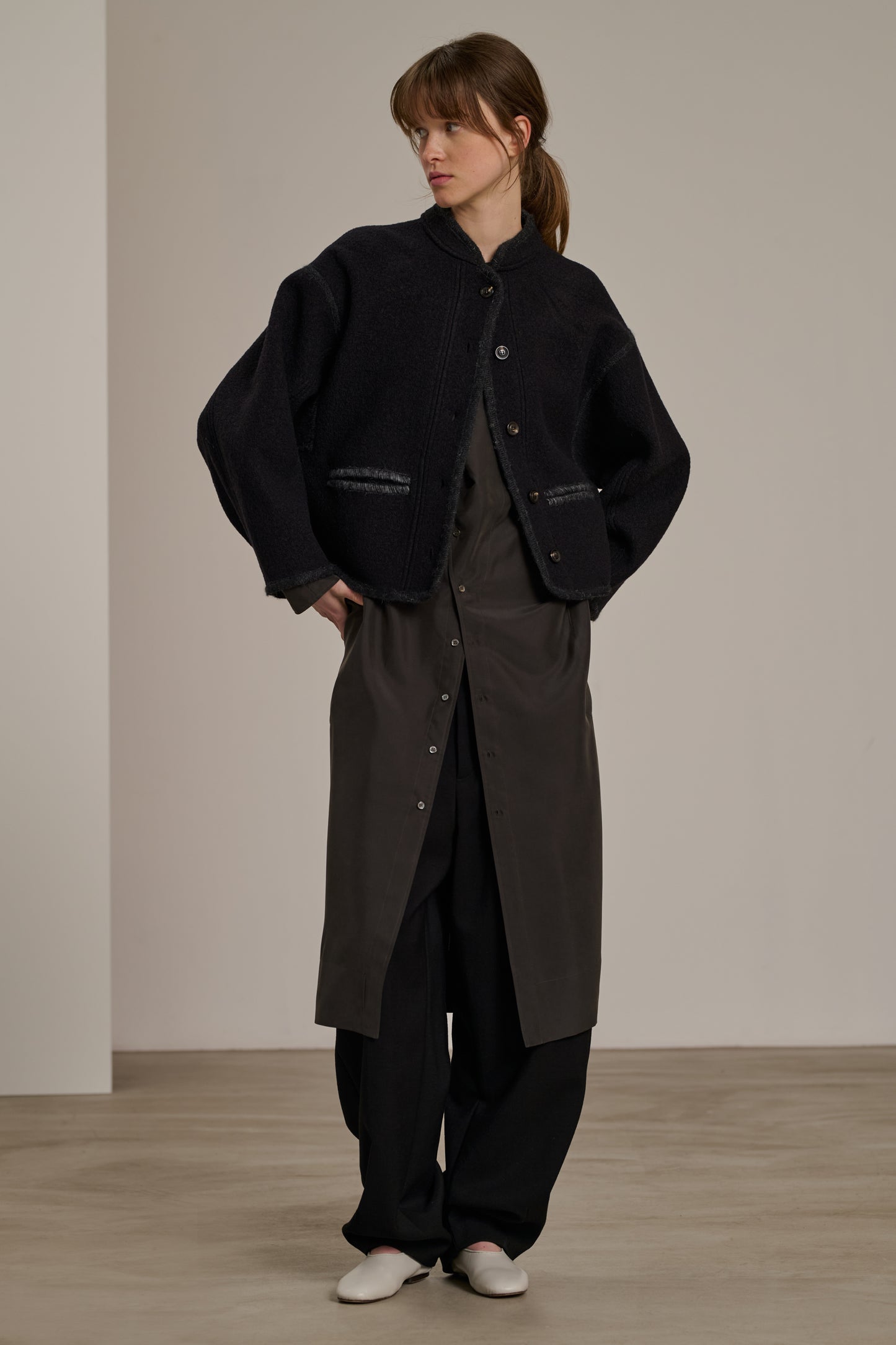 - Giacca corta dal taglio ampio e rotondo