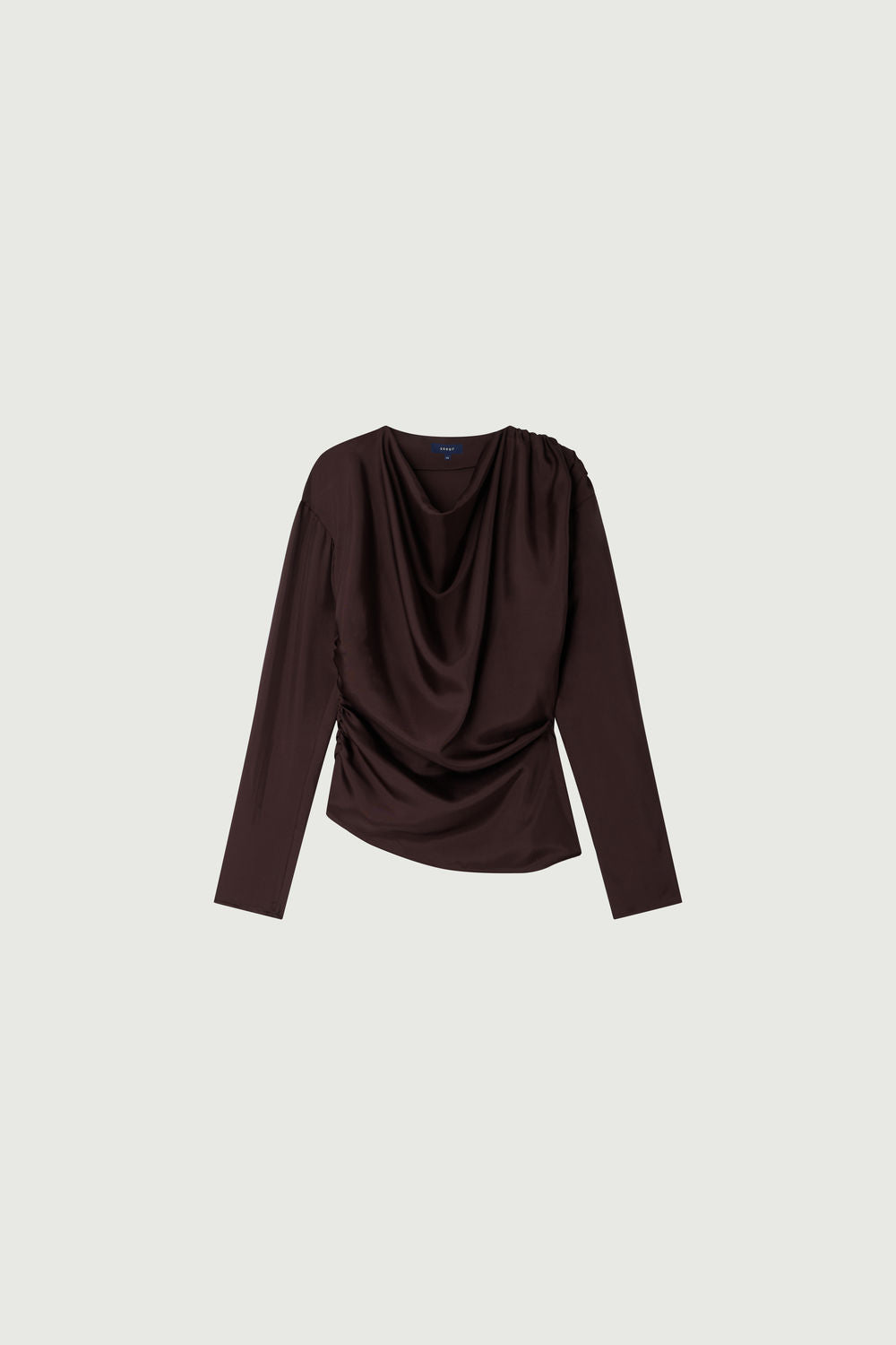 FRESIA est une blouse en sergé fluide prune à la coupe cintrée et élégante. Son encolure asymétrique et son effet drapé sur l'épaule apportent une touche sophistiquée. Le zip invisible sur le côté assure une silhouette impeccable. Confectionnée en polyester recyclé, elle allie style et durabilité.