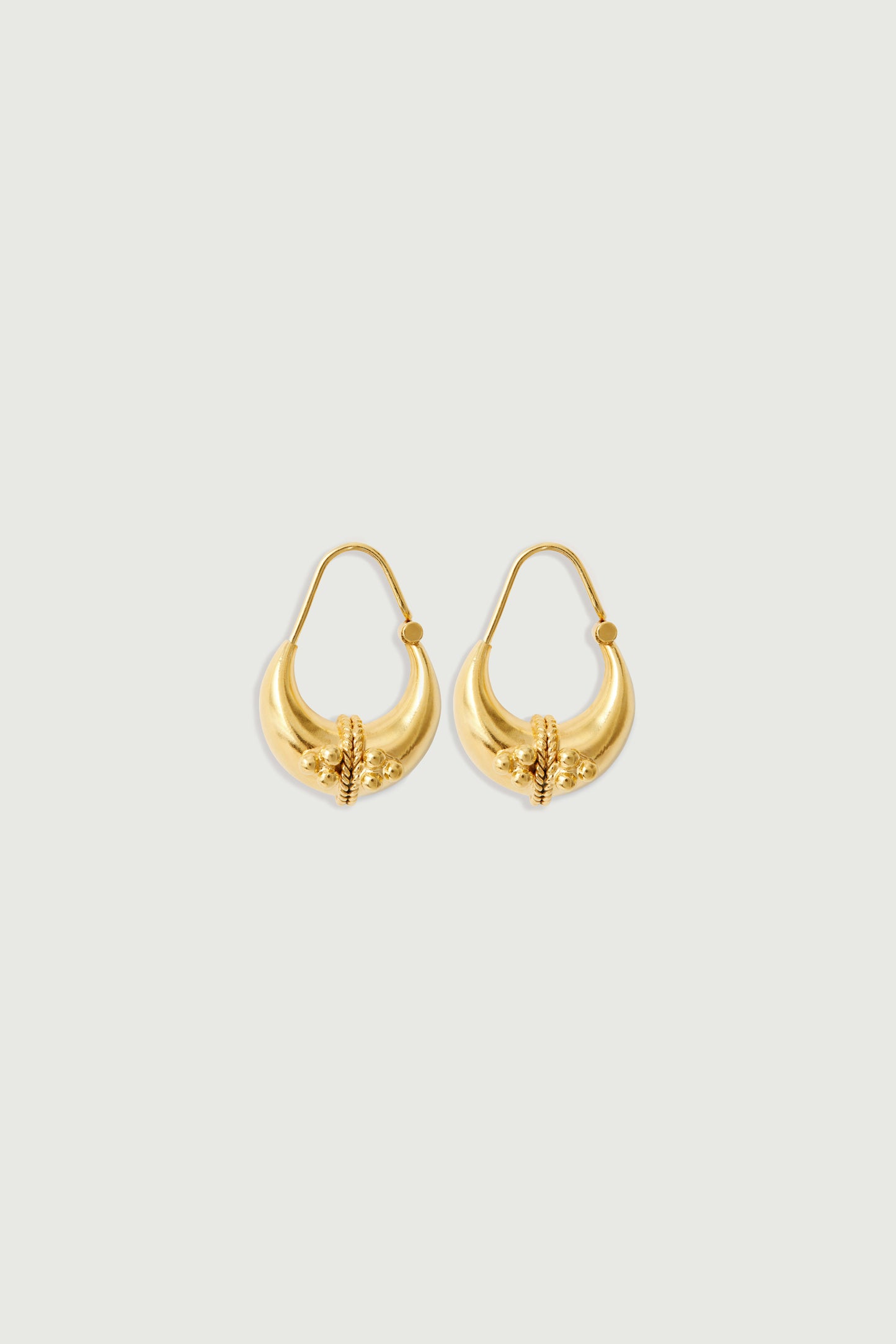 ZAGREB est une paire de boucles d'oreilles bombée en vermeil, qui présente une gravure au centre. Elle peut être assortie à la bague ZELIE qui présente le même aspect bombé.
