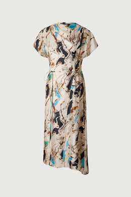 FELICIE est une robe en twill de soie au tombé fluide et brillant. Sa coupe ample et ses manches courtes offrent une allure élégante. Le col asymétrique et la ceinture amovible soulignent une taille modulable. Parfaite pour des occasions habillées, elle incarne un esprit couture raffiné.