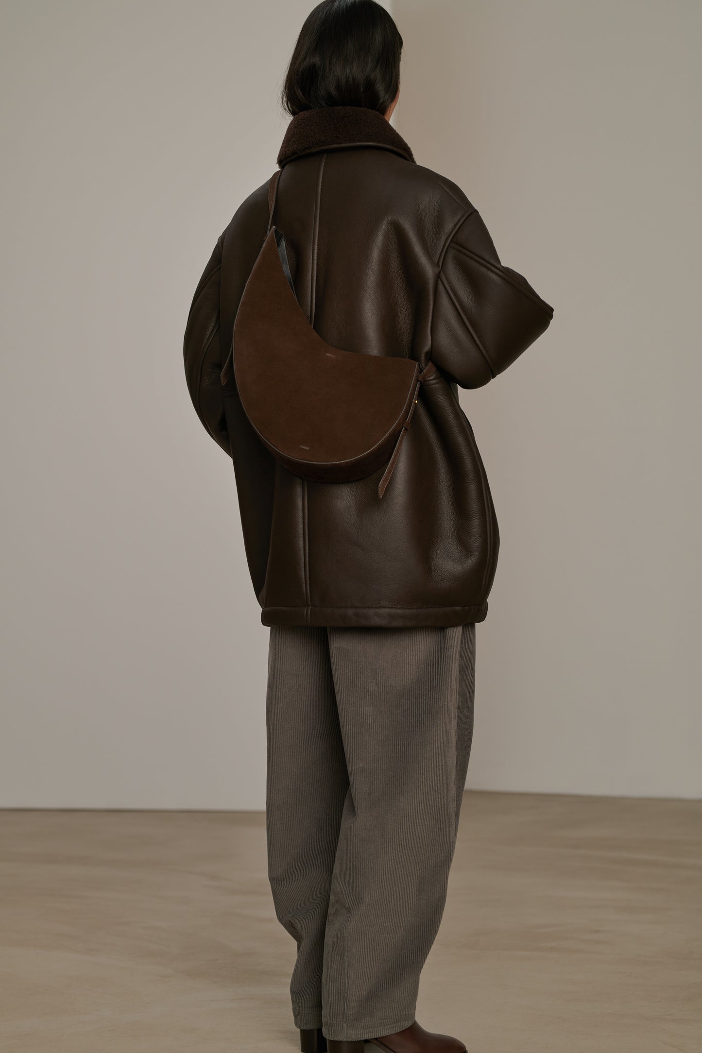- Sac en croûte de cuir marron foncé à bandoulière